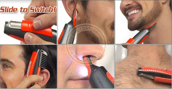 Většina mužů pravděpodobně využije zastřhiovač Micro Touch Switch Blade k odstranění chloupků na zátylku, aby stále vypadali, jako kdyby právě vyšli od holiče. S jeho pomocí mohou získat rovné a stejnoměrné kotlety, pěkně zastřižené obočí, a mohou se zbavit dokonce i chlupů na zádech, na pažích, na kloubech, v nose a v uších. S pomocí tohoto zastřihovače můžete zastřihnout téměř vše, na co si vzpomenete.