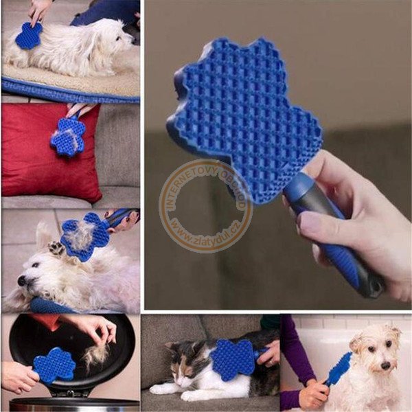 Vyčesávací hřeben pro domácí mazlíčky je vhodný pro jakékoliv zvířátka s delší, kratší, hustší nebo i kudrnatou srstí. Vyčesávacím hřebenem budete rozmazlovat vaše miláčky. Hřeben krásně prokrví jejich kůži, dodá srsti lesklý a hebký vzhled, rozčeše všechny uzly, vyčeše veškerý prach a odumřelou kůži a promasíruje jim celé tělo. Tento kartáč využijete i při koupání mazlíčka, silikonové hroty vmasírují šampon až ke kořínkům srsti a s výsledkem budete vždy spokojeni. Kartáč je obostranný, jedna strana slouží pro vašeho miláčka a ta druhá pro vás, díky speciálně upravenému povrchu kartáče odstraníte chlupy z polštářů, gauče, deky, autosedaček, atd.