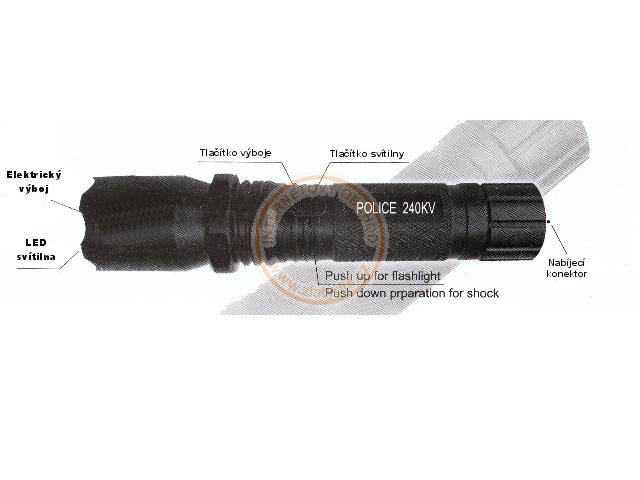 Elektrický Paralyzer Police s přídavným Luxeon Led světlem je dokonalý osobní obranný prostředek. Okamžitá sebeobrana Vás Ochrání před zloději, násilníky , divokými zvířaty, atd… Účinný i přes vrstvu oděvu