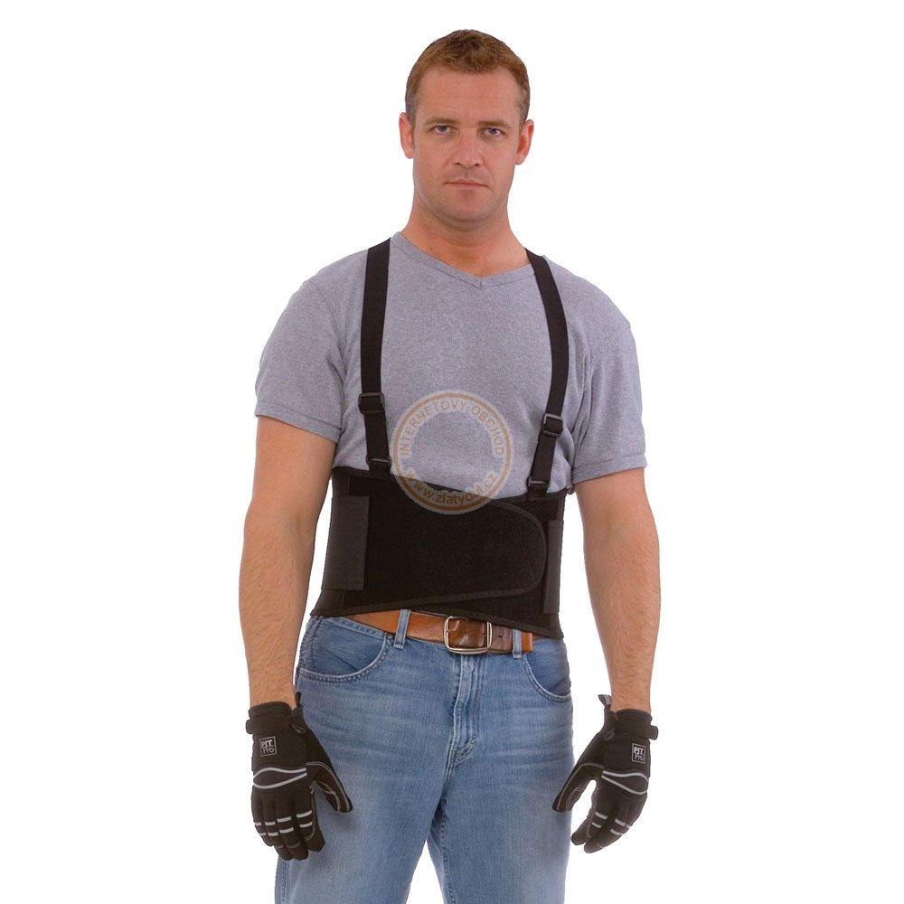 Popruhy zabraňují sesunování pásu. Pás se doporučuje používat jako zabezpečení při vykonávání činností zatěžujících páteř.