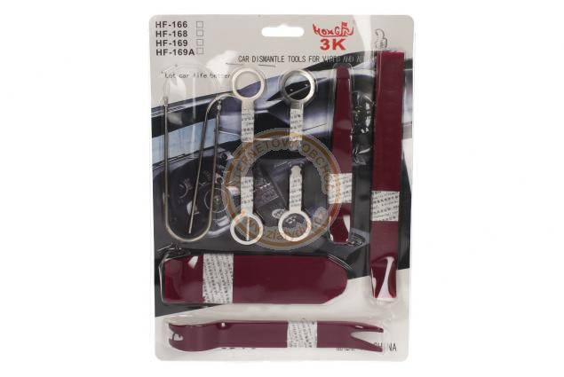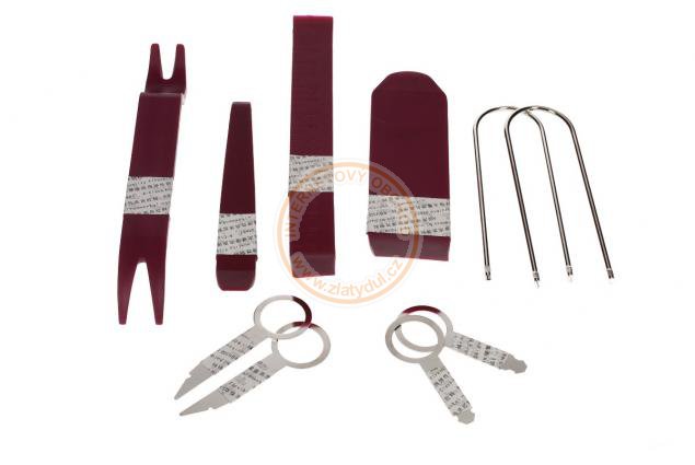Se sadou pro montáž a demontáž interiéru vozidel můžete bezpečně namontovat audiozařízení, nebo demontovat vnější a vnitřní obložení, palubní desku, atd. Plastová konstrukce nástroje zabraňuje jakémukoli poškození vozidla. Ideální pro demontáž a montáž rádií, mřížek reproduktorů, panelů, LCD obrazovky, palubní desky, obložení, lišty, dveřních panelů. Nástroje jsou navrženy tak, aby vyhovovaly každému automobilu.